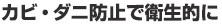 木のインテリアは、カビやダニの発生も抑えます。カビの原因は湿度ですから、前述した理由で、室内の湿度を快適にする木は、まさにカビの発生を防止する役目を持っています。また、特にダニは赤ちゃんのいる家庭では大敵です。不衛生であるばかりか、病気やアレルギーの原因にもなりますが、無垢の木の床にすれば、ダニの発生を防ぐことができます。一部の木に含まれている精油成分がダニの抑制効果を持っているためです。 |