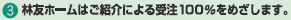 林友ホームは、ご紹介による受注の割合が、お客様の満足度の割合と考えます。ご紹介100%をめざして、社員一同、さらなる努力をいたします。 |